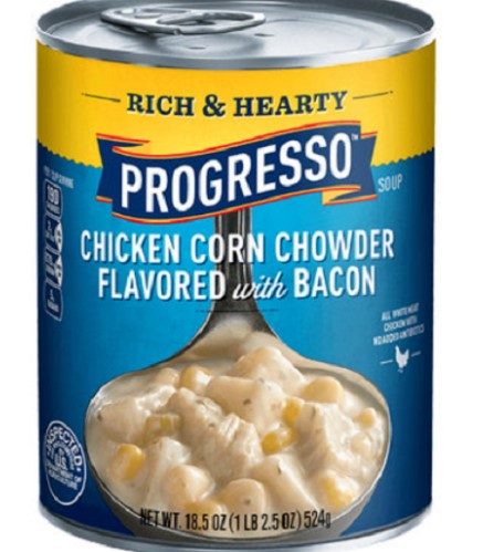 Zutaten: Hühnerbrühe, Mais, Gekochtes Weißes Hühnerfleisch, Kartoffeln, Sellerie, Zwiebeln. Enthält Weniger Als 2% Von: Sojaöl, Modifizierte Lebensmittelstärke, Zucker, Maisprotein (Hydrolysiert), Wasser, Gewürfelter Speck Gepökeltes Schweineschulter Gemahlen Und Gebildet (Schweinefleisch Mit Salz Gepökelt, Enthält Weniger Als 2% Von: Dextrose, Raucharoma, Karamellfarbe, Natriumnitrit, Natriumerythorbat, Bha, Bht, Zitronensäure), Salz, Geröstetes Maismehl, Sojaproteinkonzentrat, Sahne, Natriumphosphat, Butter, Kaliumchlorid, Aroma, Natürliches Aroma, Molkenproteinkonzentrat, Sojaproteinisolat, Zwiebelpulver, Tomatenextrakt, Getrocknete Petersilie, Gewürz, Maltodextrin, Getrockneter Schnittlauch, Beta-Carotin (Farbe), Hefeextrakt.