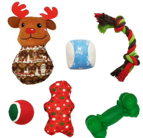 HOLIDAY TIME Dog Toys Stocking 6 Pieces Hundespielzeug Set