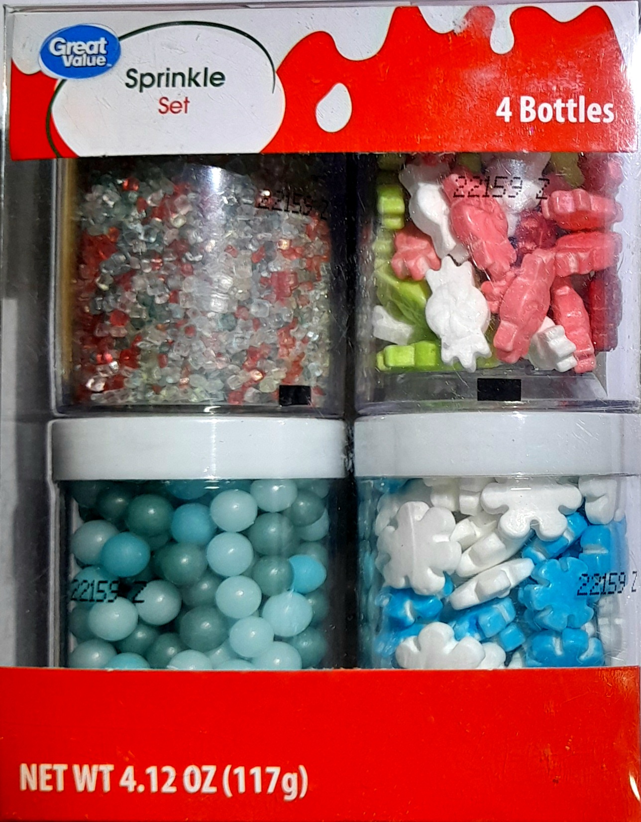 Great Value 'Holiday' Sprinkle Mix 4er Set Streusel zum Dekorieren, blau Schneeflocken, Perlen 117 gr