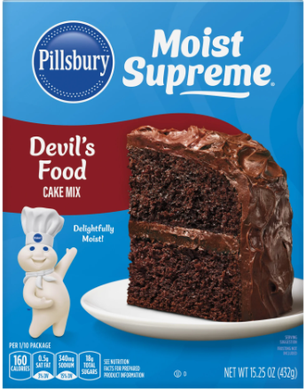 Zutaten: Angereichertes gebleichtes Mehl (Weizenmehl, Niacin, reduziertes Eisen, Thiaminmononitrat, Riboflavin, Folsäure), Zucker, mit Alkali verarbeiteter Kakao, Sauerteig (Backpulver, Calciumphosphat, Natriumaluminiumphosphat), enthält 2% oder weniger: Canolaöl , Propylenglykolester von Fettsäuren, Maisstärke, Salz, Monoglyceriden, Cellulose, Cellulosegummi, Xanthangummi, Natriumstearoyllactylat, natürlichem und künstlichem Geschmack, Zitronensäure und BHT (Antioxidantien), Rot 40.